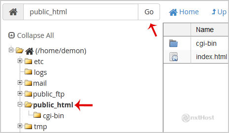 4. Navighează la directorul în care vrei să încarci fișierele. De exemplu, dacă vrei să încarci fișierul în folderul public html, trebuie să intri mai întâi în /public_html. În partea stângă vezi lista de directoare. Dă dublu click pe folderul "public_html".