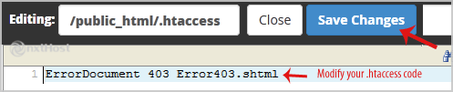 8. Fă modificările dorite în .htaccess și apoi apasă pe "Save Changes".