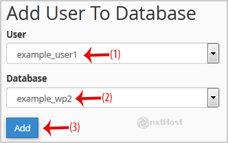 3. Derulează la finalul paginii și la "Add User to Database" selectează un utilizator din listă, apoi alege baza de date.