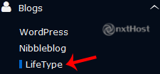 4. În partea stângă a ecranului, găsește categoria "Blogs". Apasă pe ea și apoi apasă pe "LifeType".