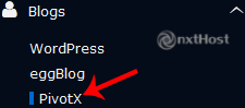 4.  În partea stângă a ecranului, găsește categoria "Blogs". Apasă pe ea și apoi apasă pe "PivotX".