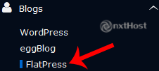 4. În partea stângă a ecranului, găsește categoria "Blogs". Apasă pe ea și apoi apasă pe "FlatPress".