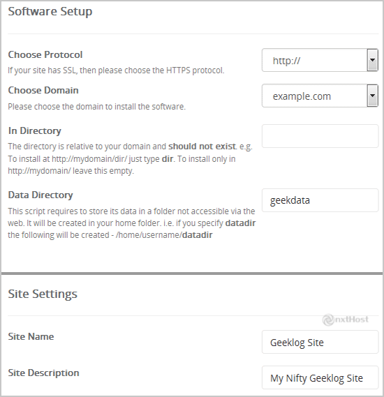 - Site Name: Introdu numele site-ului, de exemplu "Geeklog".