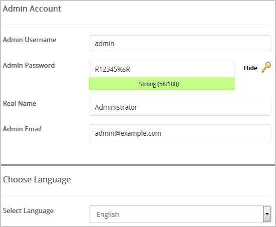 - Admin Username: Noul tău username Bolt (din motive de securitate nu folosi "Administrator" sau "Admin").