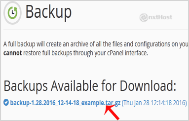 3. La "Backup complet", apasă pe butonul "Download a Full Website backup".