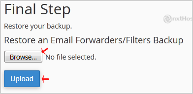 5. Apasă pe "Browse", selectează fișierul de backup de pe PC și apasă pe butonul "Upload".