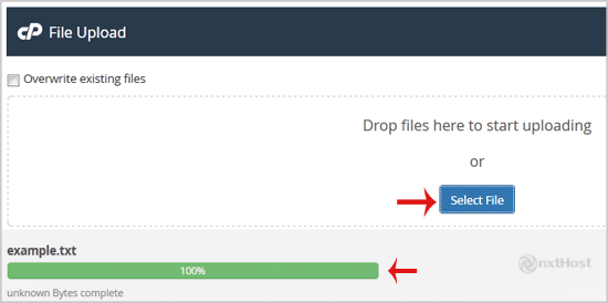 6. Apasă pe butonul "Select File" și selectează fișierul pe care vrei să îl încarci de pe PC. După ce ai selectat fișierul, încărcarea va începe automat.