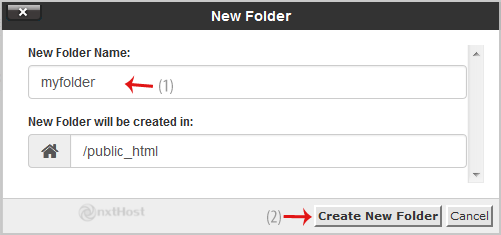 5. În câmpul "New Folder Name" introdu numele folderului, de exemplu "myfolder" (fără ghilimele). Apoi apasă pe butonul "Create New Folder".