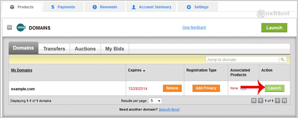 4. Apasă pe "Launch" lângă domeniul pe care vrei să-l administrezi.
