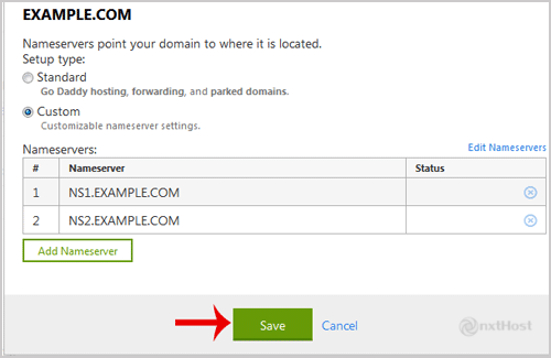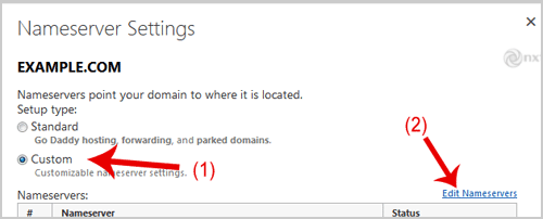 6. La "Nameservers Settings", selectează "Custom" și apasă pe "Edit Nameservers".