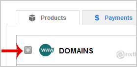 3. După autentificare, apasă pe pictograma + (plus) de lângă Domains, în tab-ul "Products".