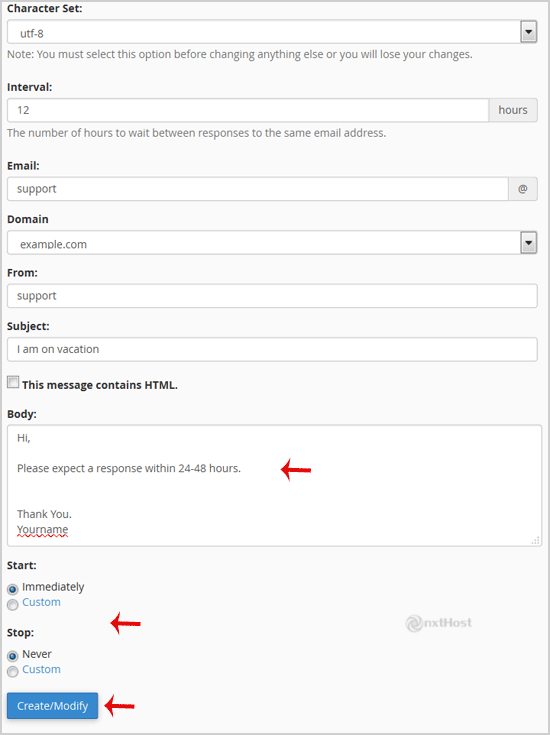 6. În câmpul From, introdu numele de la care va fi trimis răspunsul automat.
