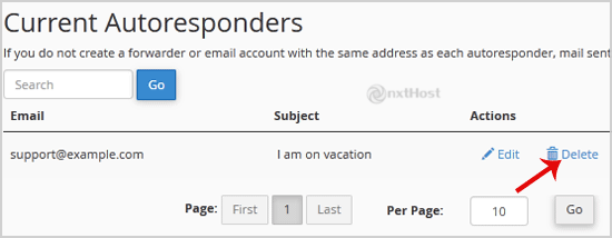 3. În dreptul autoresponderului, apasă pe "Delete".