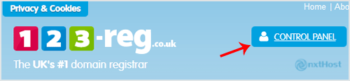 1. Deschide 123-reg.co.uk și apasă pe "Control Panel". Se va afișa un formular de autentificare.