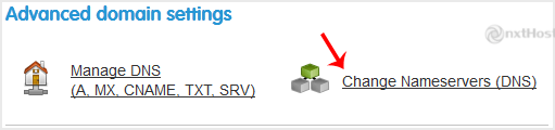 4. Derulează la "Advanced domain settings" și apasă pe "Change Nameservers (DNS)".