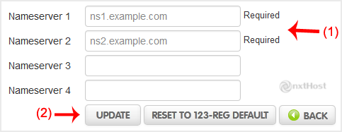 5. Introdu nameserver-ele în câmpurile 1 și 2 și apasă pe butonul "Update".