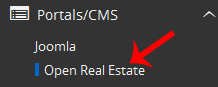 4. În partea stângă, găsește categoria "Portal/CMS". Apasă pe ea și apoi pe "Open Real Estate".