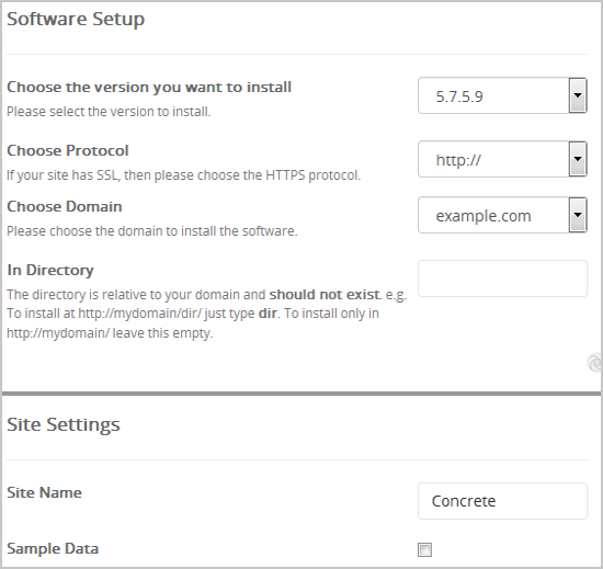 - Site Name: Introdu numele site-ului, de exemplu "Concrete5".