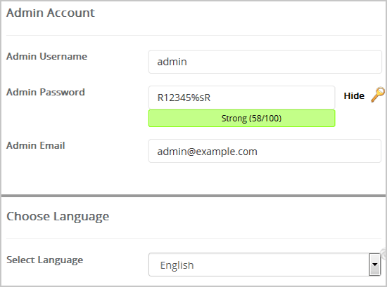 - Admin Username: Noul tău username Concrete5 (din motive de securitate nu folosi "Administrator" sau "Admin".)