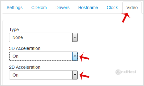 1. În tab-ul "Video", pentru a dezactiva accelerarea 3D selectează "Off" din meniul drop-down. Pentru a o activa, selectează "On" la 2D/3D Acceleration.
