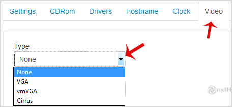 1. Derulează în jos și, în tab-ul "Video", schimbă tipul din meniul drop-down, apoi repornește VPS-ul.