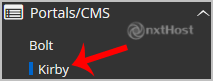 4. În partea stângă, găsește categoria "Portal/CMS". Apasă pe ea și apoi pe "Kirby".