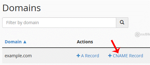 În secțiunea "Domains", vei vedea mai multe opțiuni sub textul "Actions".
