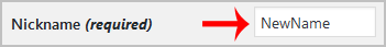3. Găsește câmpul „Nickname” și introdu noul nume.