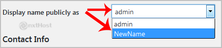 4. La „Display name publicly as”, selectează nickname-ul nou din meniul drop-down.